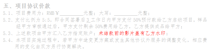 在与畅达影动签署的合同中,可以找到关于水印的条款,比如:“未结款前的影片盖有乙方水印”。
